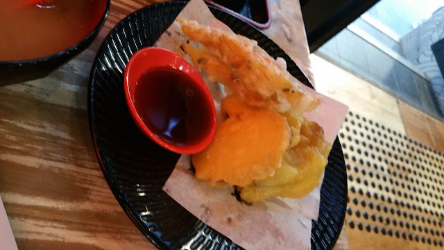 I ordered the Salmon Avocado Hand Roll and Prawn Tempura Udon.