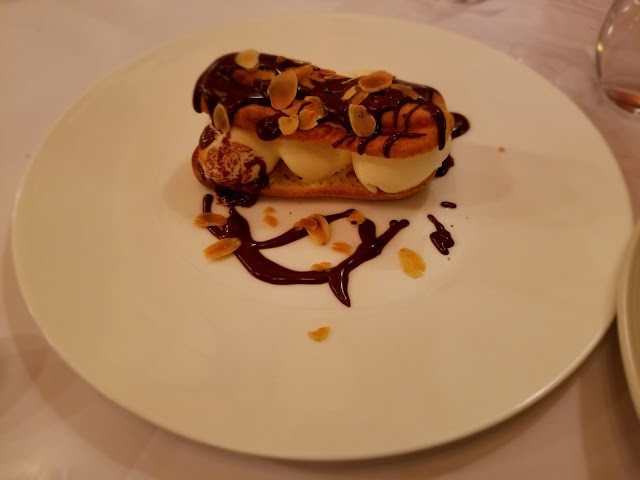Our last dessert was the Profiterole facon éclair. It was an interesting mix between an eclair and a profiterole. The eclair was fresh and had a good crunch to it, and again, we loved the vanilla creme with its remarkable texture. Topped with rich dark chocolate, it made for a wonderful dessert to finish off a delightful meal.